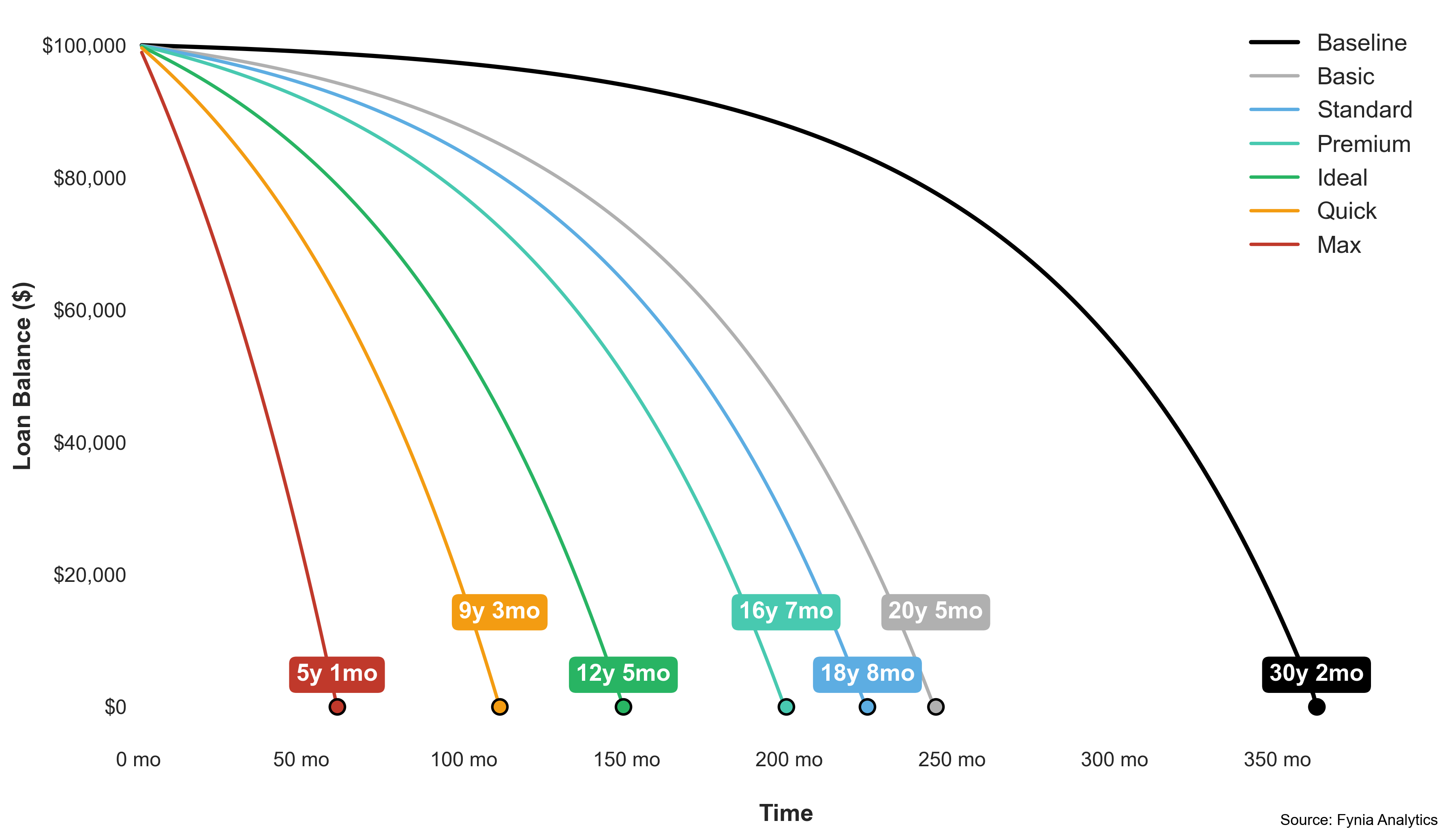 At Fynia, our mission is to help you save on interest and shorten your loan duration by optimizing repayment efficiency. We focus on how each dollar of your monthly payment works to reduce your loan balance effectively.
