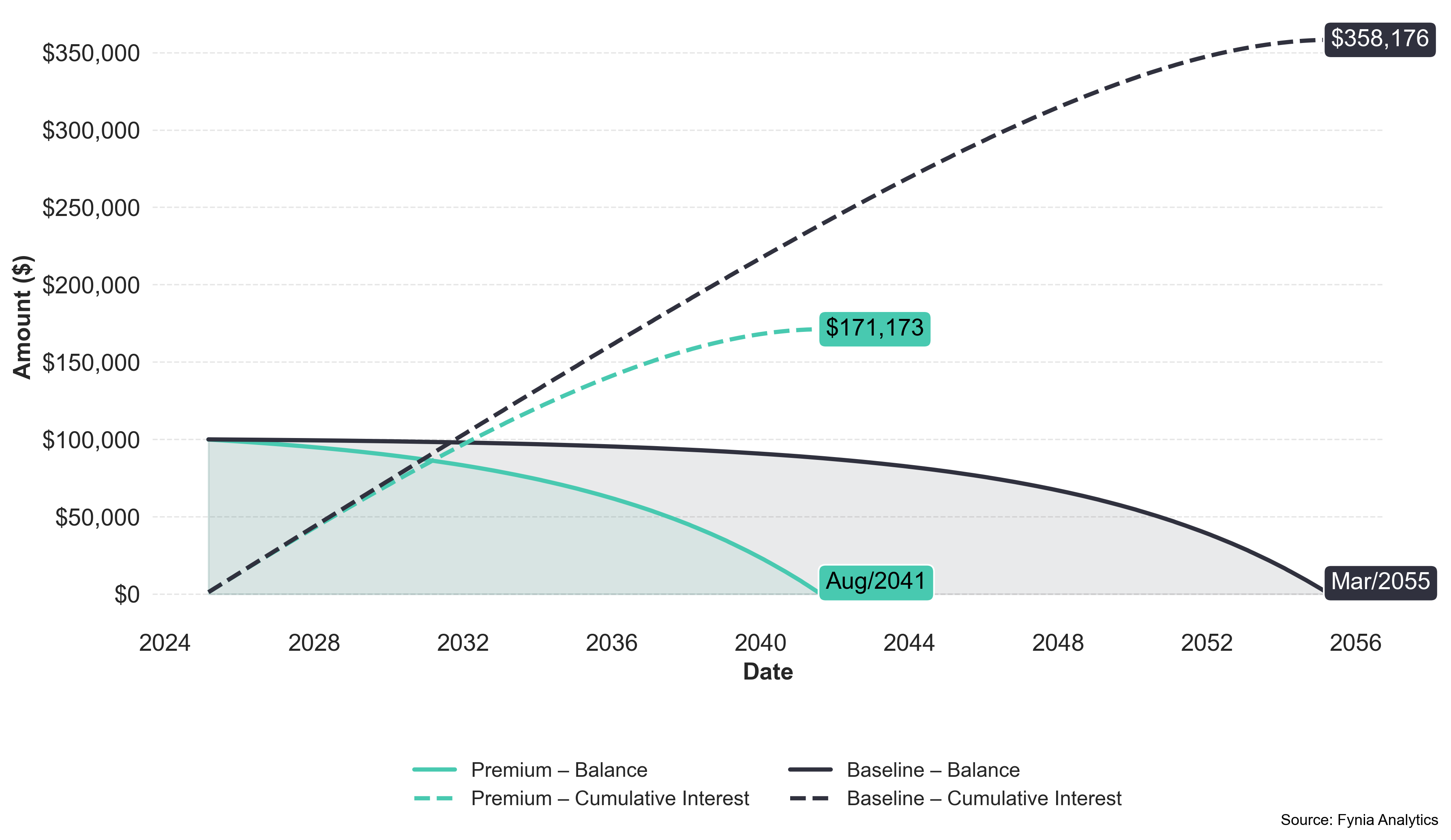 Premium increases your monthly payment modestly to achieve substantial interest savings and a shortened loan term. It offers a well-balanced upgrade in efficiency for borrowers seeking noticeable benefits without dramatic cost increases.